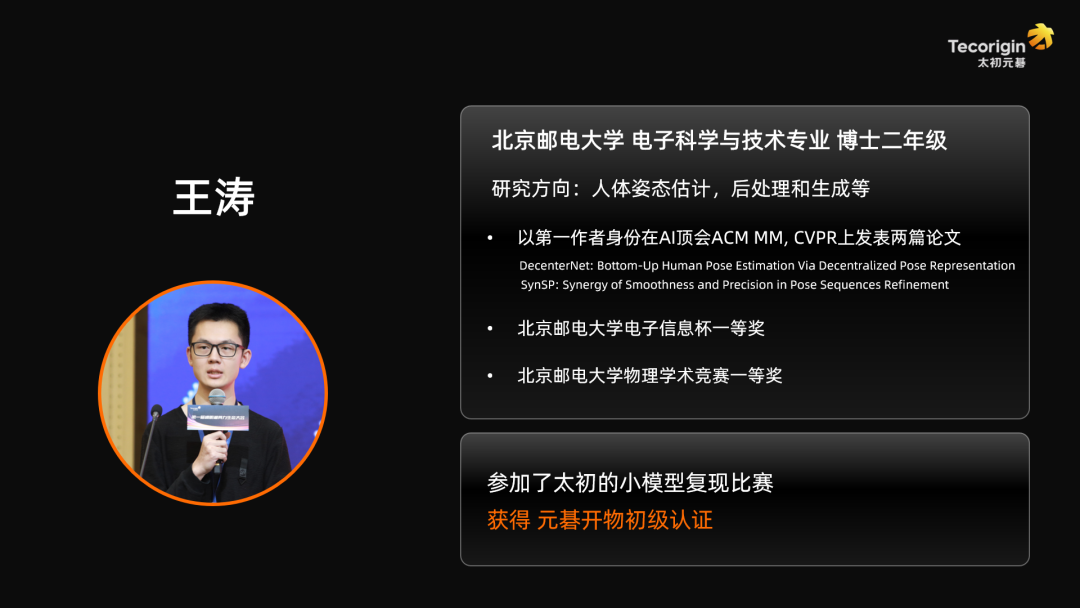 回顧整個參賽歷程,我不僅深化了對混合精度訓練和多卡并行技術(shù)的理解,更在評委們嚴謹?shù)脑u審標準下提升了代碼接口規(guī)范化的意識。太初軟件生態(tài)的卓越適配性給我留下了深刻印象:僅需一條簡單命令即可完成模型設備的遷移,極大降低了科研人員的遷移成本。TecoPyTorch提供的教程文檔內(nèi)容豐富、易于理解,顯著降低了學習曲線。特別值得一提的是,太初AI加速卡在顯著提升訓練速度的同時,其超低功耗特性也為降低訓練過程中的碳排放做出了重要貢獻。我十分期待在未來的科研工作中繼續(xù)使用太初AI加速卡,為推動AI技術(shù)的發(fā)展貢獻自己的力量。