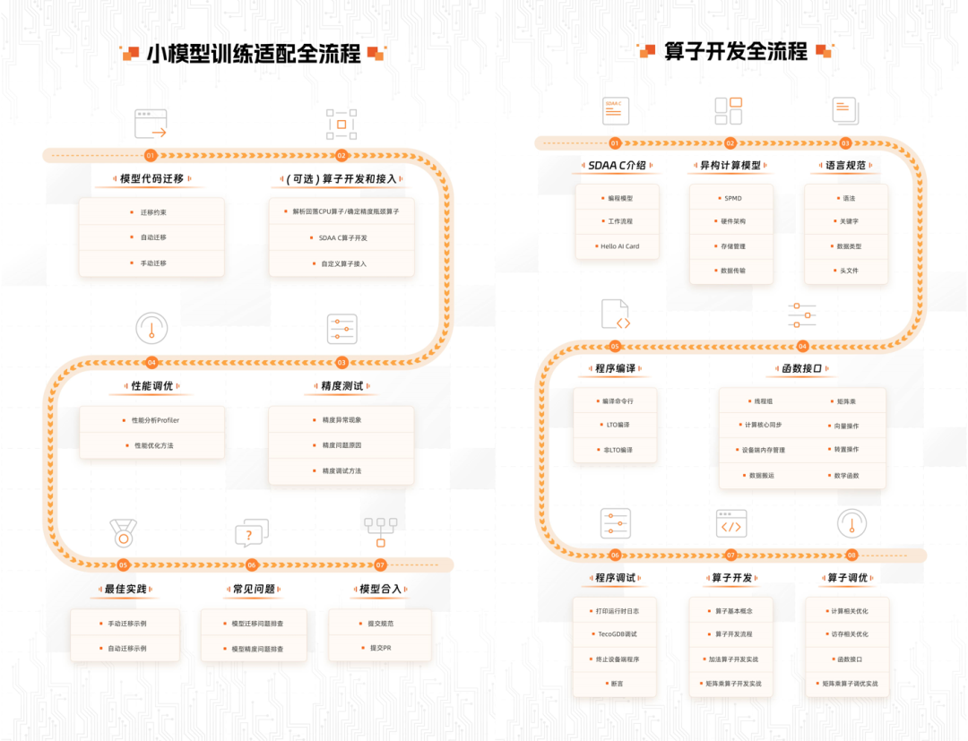 產(chǎn)品文檔中心推出基于用戶真實(shí)開發(fā)場(chǎng)景的學(xué)習(xí)地圖。將模型適配、算子開發(fā)等高頻場(chǎng)景任務(wù),串聯(lián)成邏輯嚴(yán)謹(jǐn)?shù)闹R(shí)圖譜,用戶無(wú)需自行梳理知識(shí)脈絡(luò),減少零散學(xué)習(xí)的摸索時(shí)間,實(shí)現(xiàn)更高效地系統(tǒng)學(xué)習(xí)。