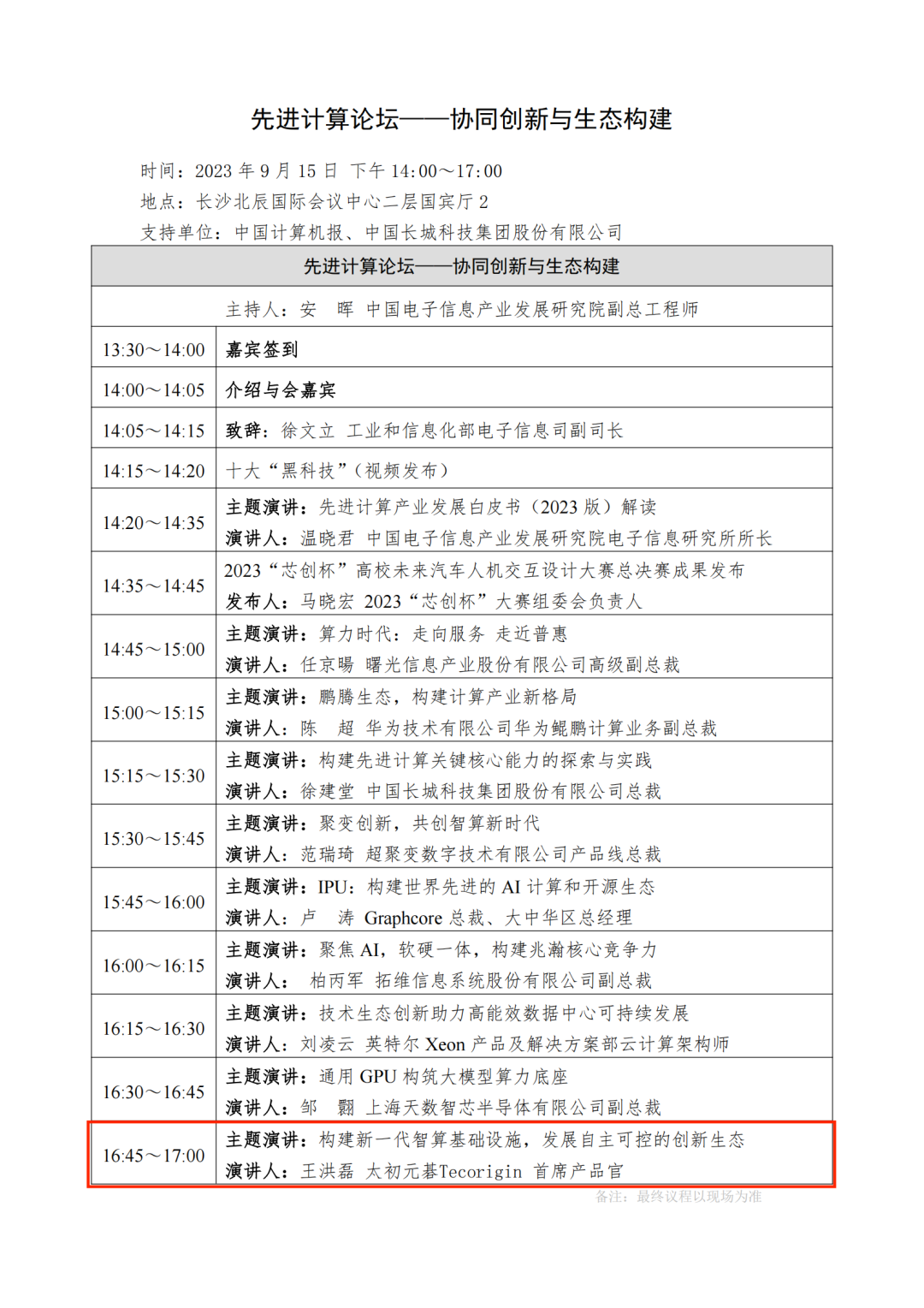 倒計時4天——太初元碁Tecorigin邀您共赴2023世界計算大會!